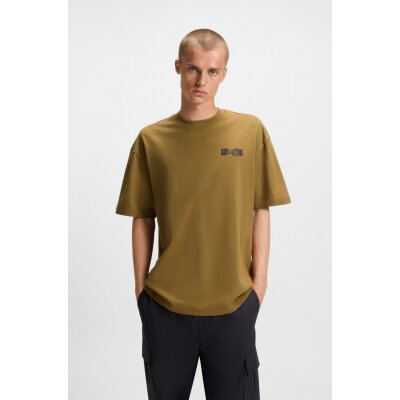 Ανδρική μπλούζα Cotton-jersey T-shirt with puff-print logo HUGO 50542810 καφέ