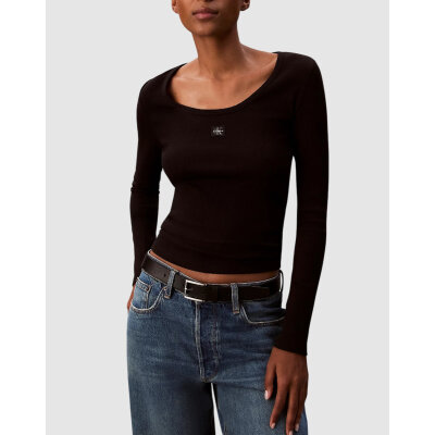 ΓΥΝΑΙΚΕΙΑ ΜΠΛΟΥΖΑ LS WOVEN LABEL 2X2 RIB SCOOP N CALVIN KLEIN LV047D218G-UB1