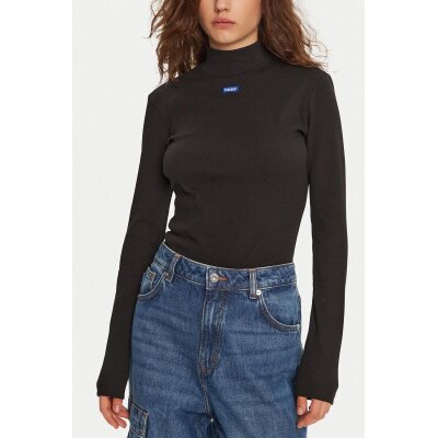 HUGO Γυναικεία Μπλούζα μαύρη Relaxed-fit knitted sweater with metallised-yarn logo 50548145