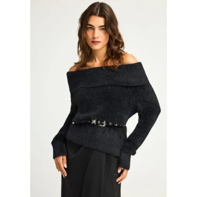 Γυναικείο Πλεκτό με Λαιμόκοψη FUNKY BUDDHA FBL012-123-09-BLACK