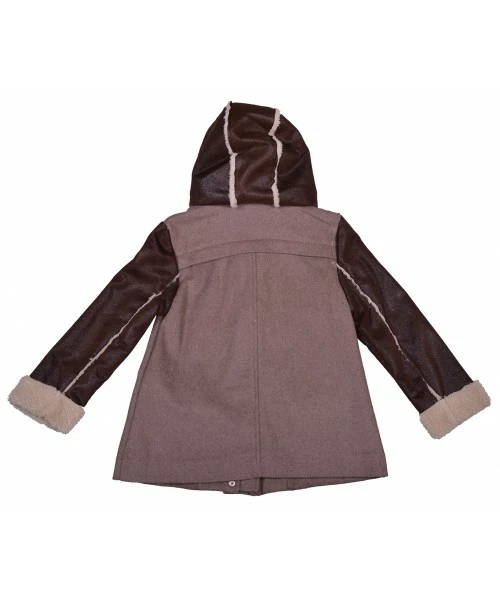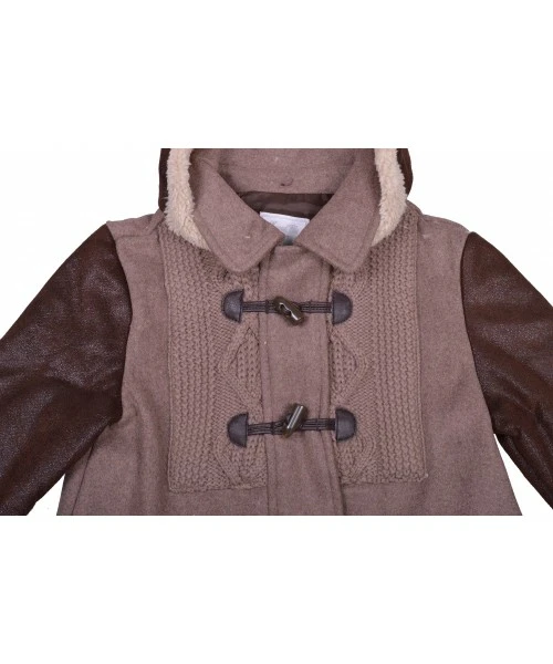 Παιδικό παλτό mayoral, στυλ μοντγκόμερυ, συνδυασμένο με πλεκτές λεπτομέρειες, μανίκια και αποσπώμενη κουκούλα μουτόν.