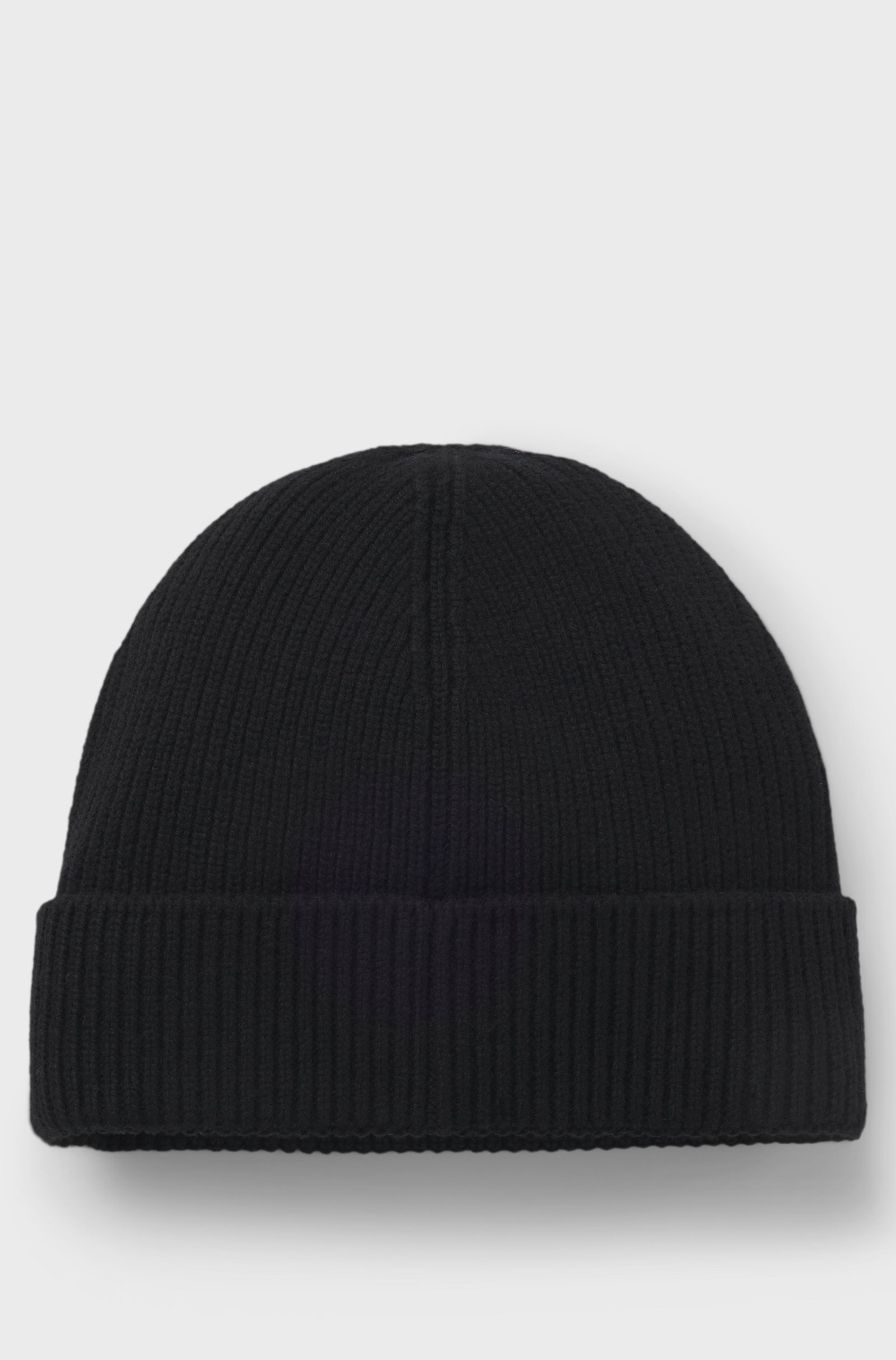 Ανδρικός Σκούφος Rib-knit beanie hat with logo label HUGO 50551371 μαύρο