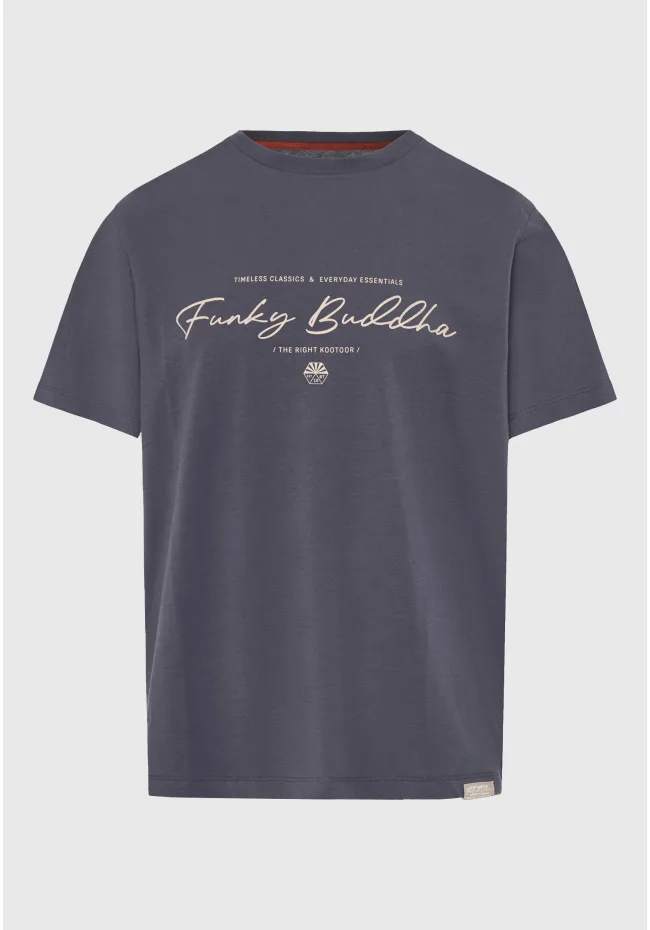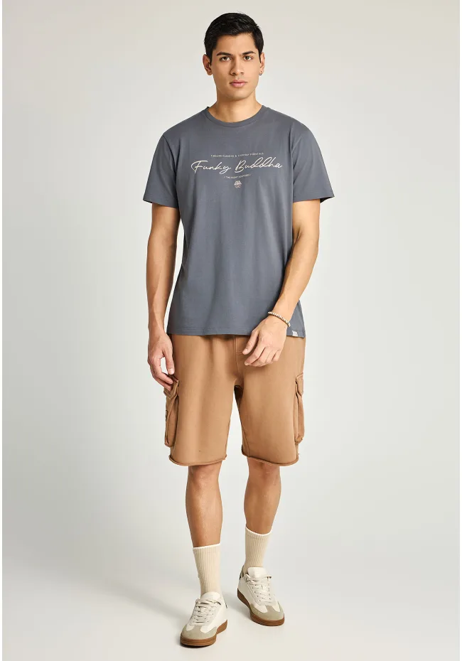 Ανδρική Μπλούζα Κοντό Μανίκι Και Τύπωμα FUNKY BUDDHA FBM013-022-04 ΓΚΡΙ