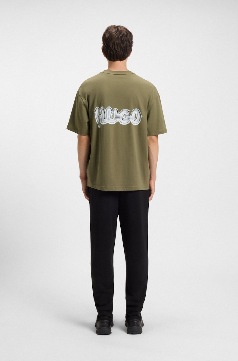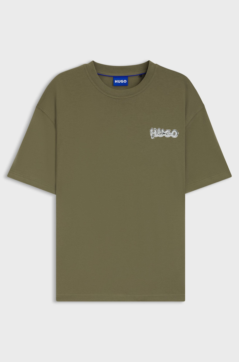 Ανδρική μπλούζα All-gender cotton-jersey with logo prints HUGO BLUE 50549769 Χακί