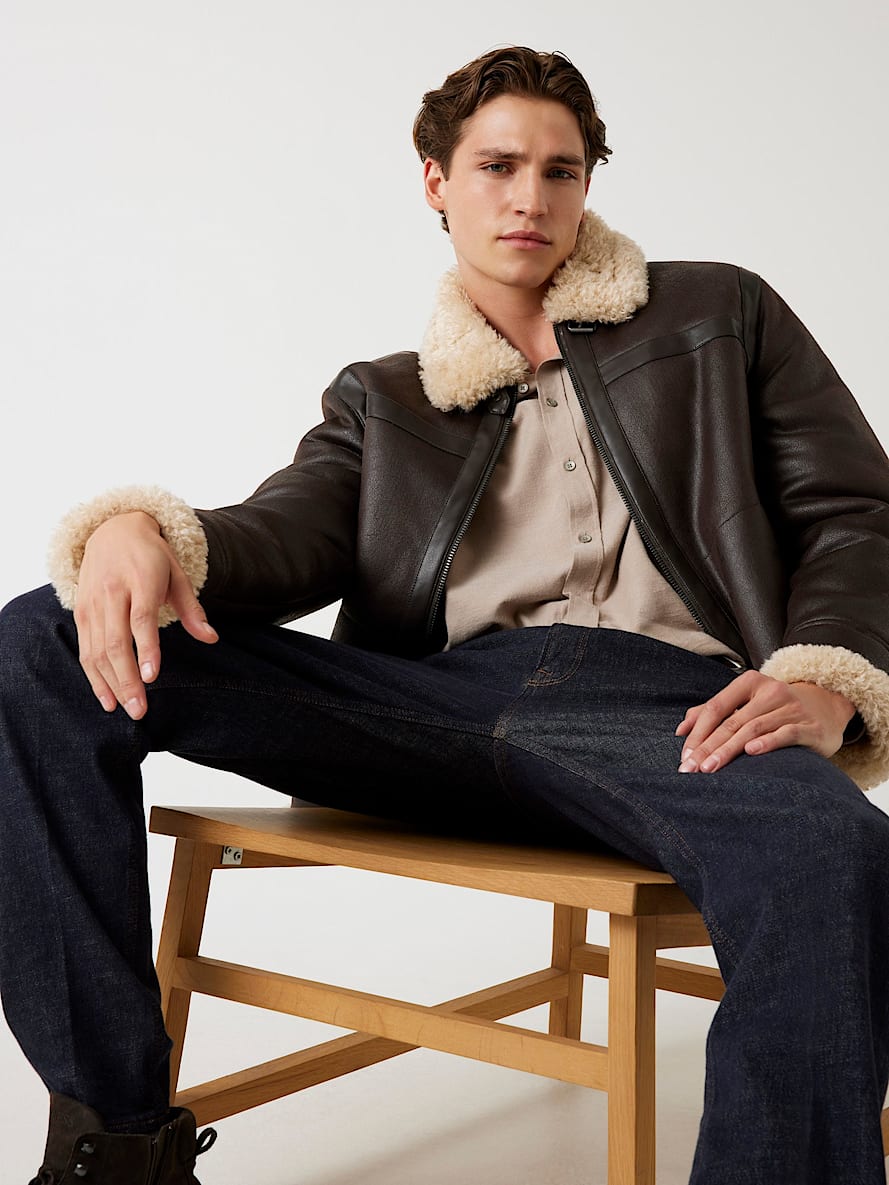 - Μπουφάν από συνθετικό μουτόν με κανονική εφαρμογή.