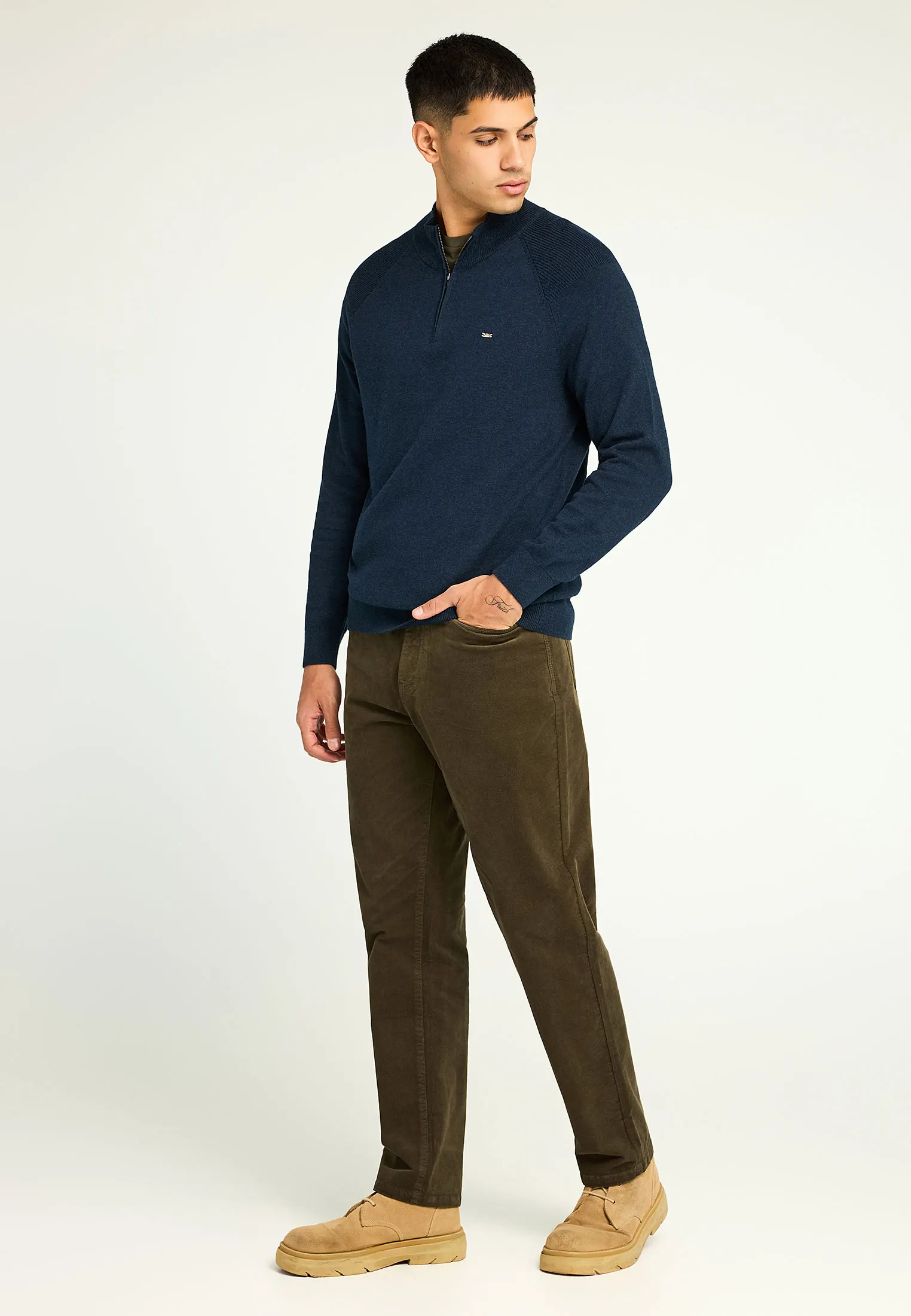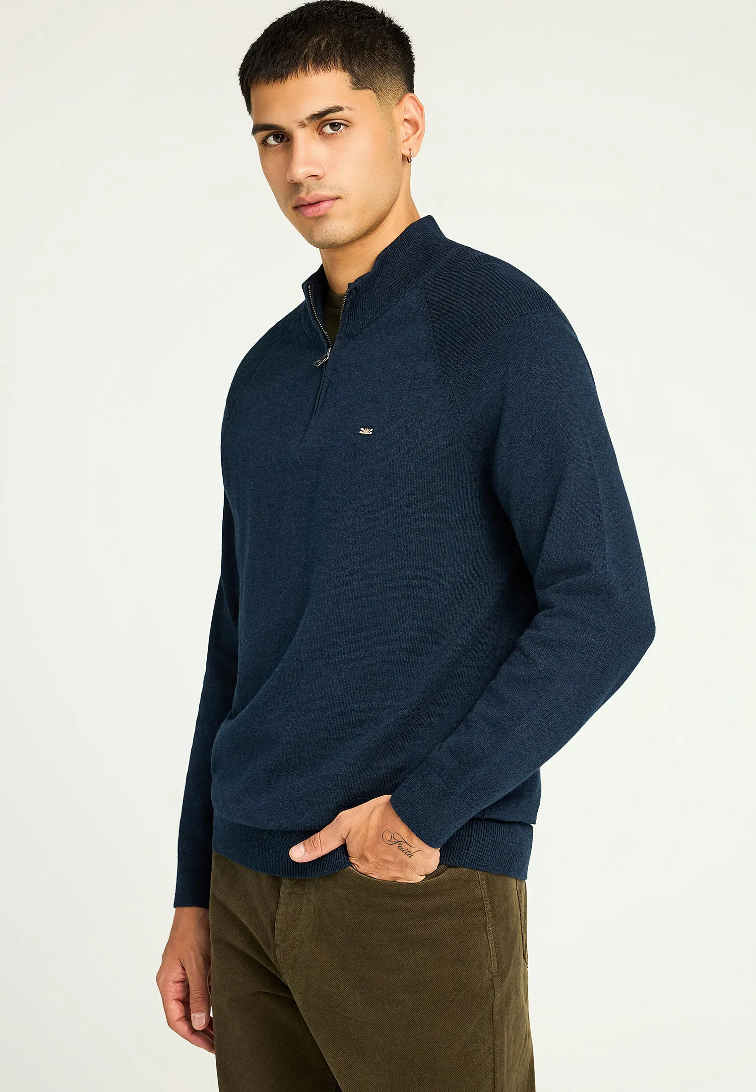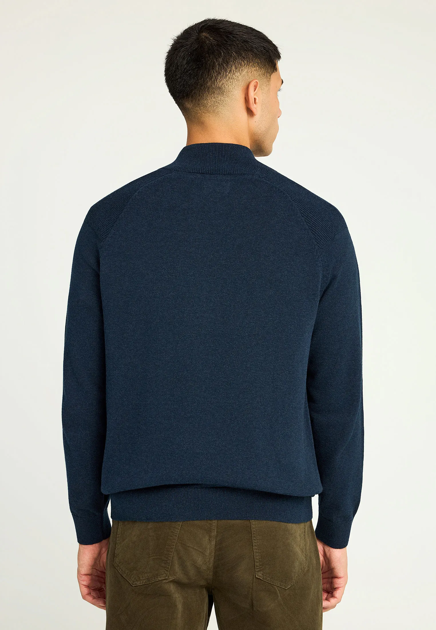 Ανανεώστε το στυλ σας με αυτή τη μονόχρωμη ανδρική πλεκτή μπλούζα, ιδανική για τις φθινοπωρινές και χειμερινές ημέρες. Με κανονική εφαρμογή και ψηλό λαιμό, προσφέρει άνεση και διακριτική κομψότητα σε κάθε περίσταση. Κατασκευασμένη από 100% βαμβάκι, εξασφαλίζει φυσική ζεστασιά και απαλή υφή. Οι ριμπ λεπτομέρειες στις μανσέτες και στο τελείωμα προσθέτουν μοντέρνο χαρακτήρα, ενώ το κεντημένο λογότυπο ολοκληρώνει το design με εκλεπτυσμένο τρόπο. Συνδυάστε τη με τζιν για ένα laid-back city look ή με chinos για ένα polished, effortless outfit.