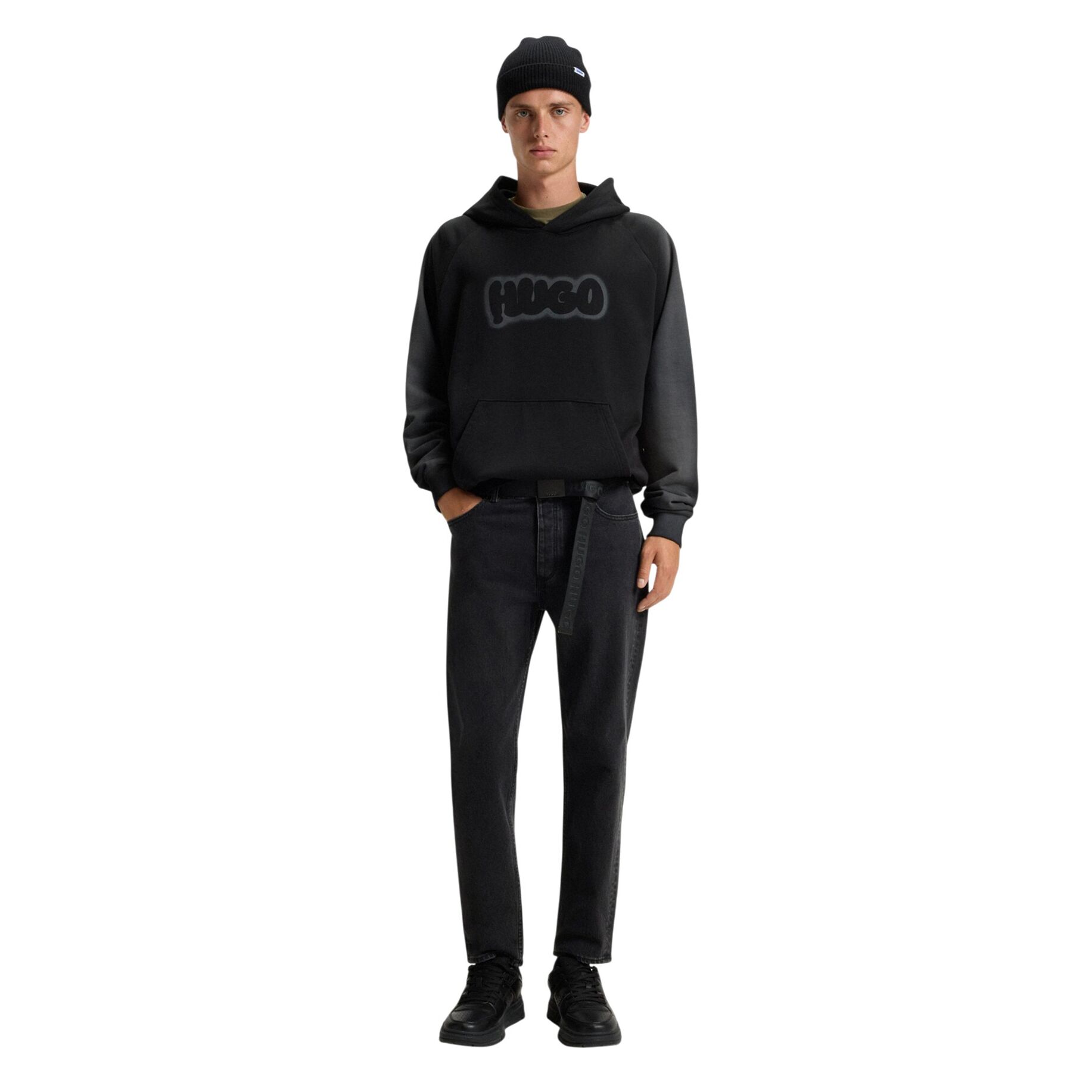 Ανδρικό παντελόνι Tapered-fit jeans in grain-effect black denim HUGO BLUE 50547133-008