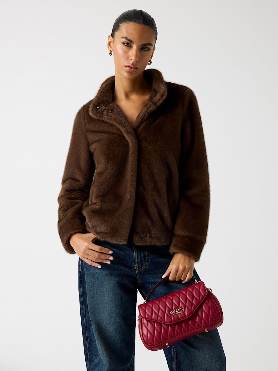 ΓΥΝΑΙΚΕΙΑ ΤΣΑΝΤΑ VALLA TOP HANDLE FLAP GUESS HWQG8122200-RED