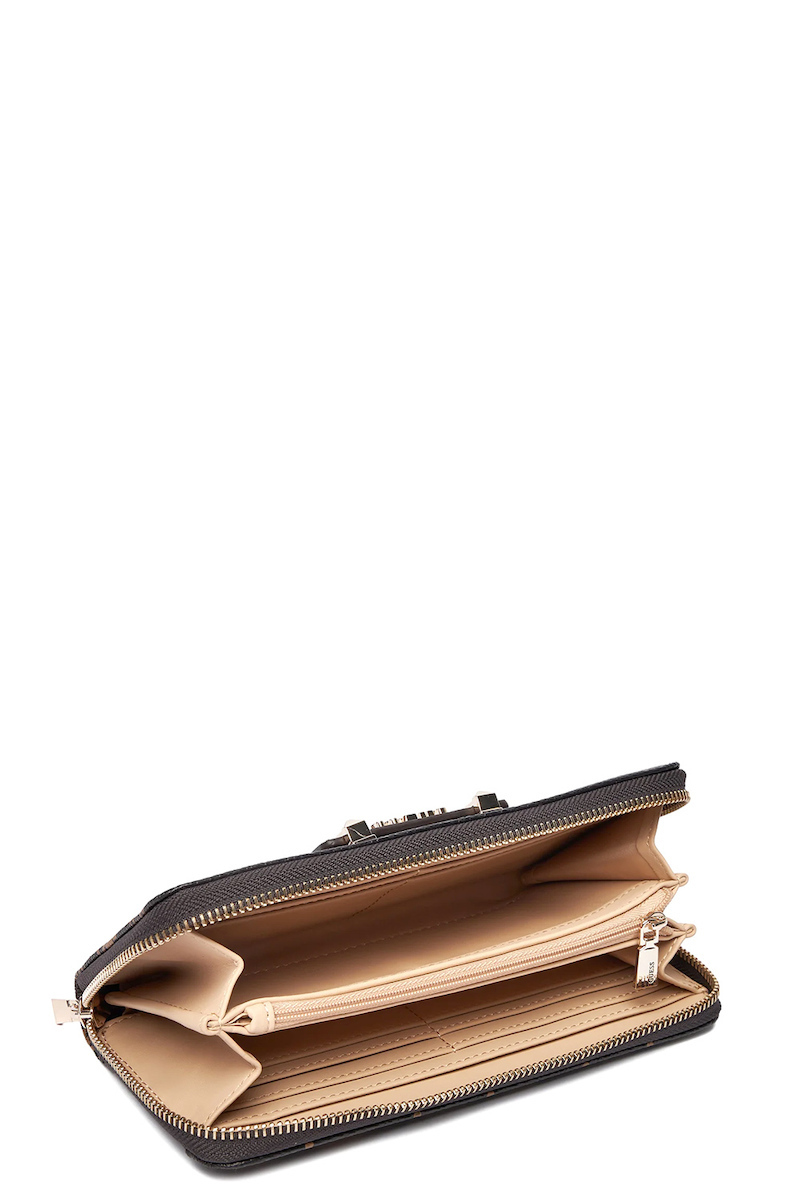 Γυναικείο πορτοφόλι Guess Silia Slg Large Zip Around με κωδικό SWGP9890146. Διαθέτει σχέδιο σε χρώμα espresso με λογότυπο. Είναι ιδανικό για καθημερινή χρήση, με επαρκή χώρο για κάρτες και μετρητά.