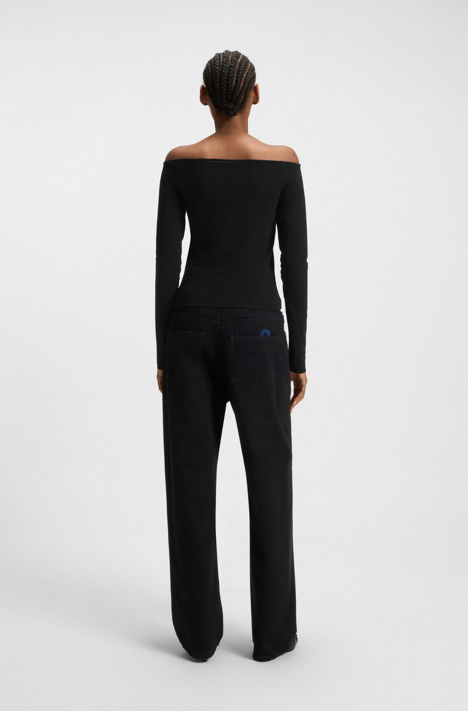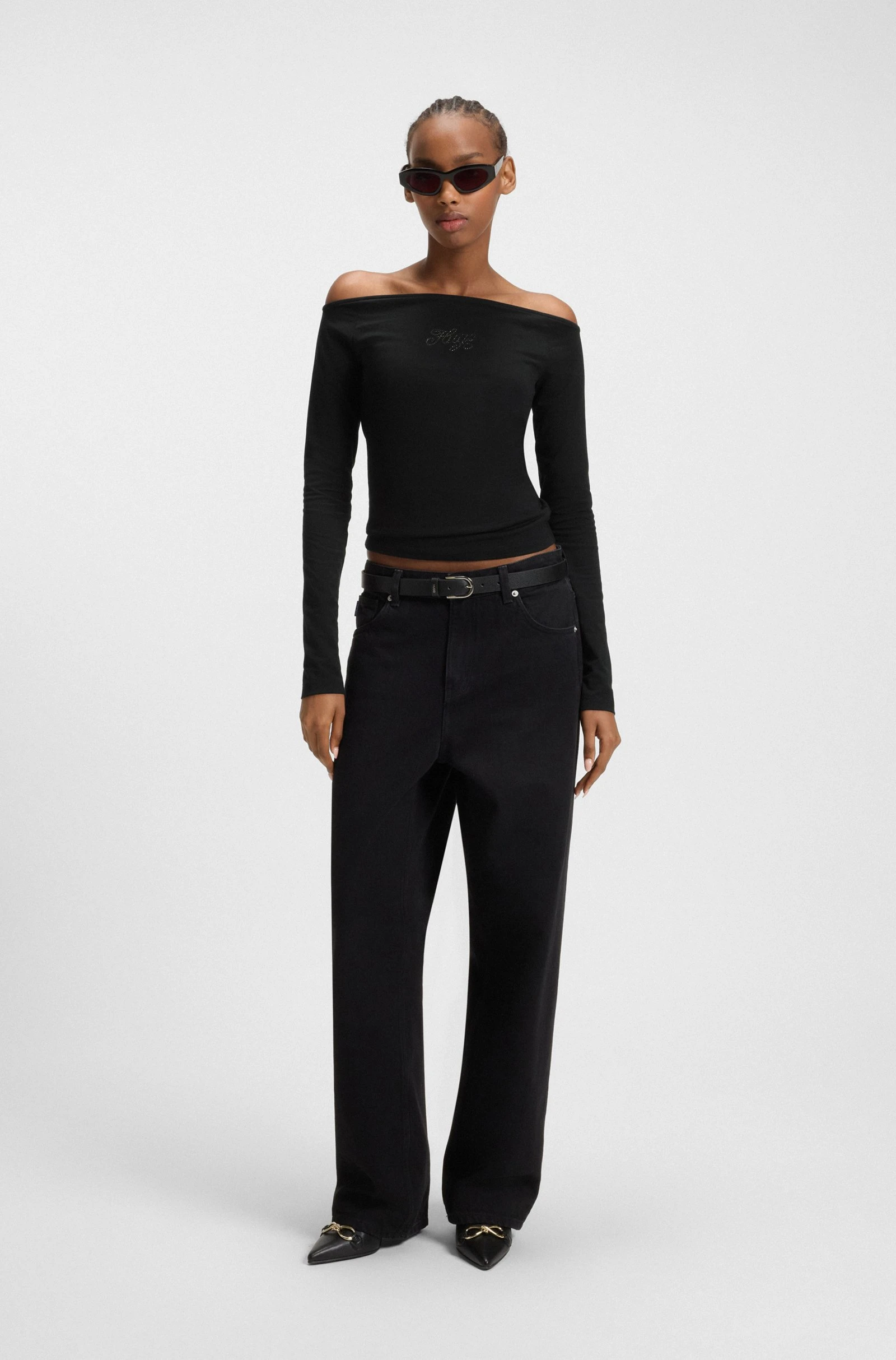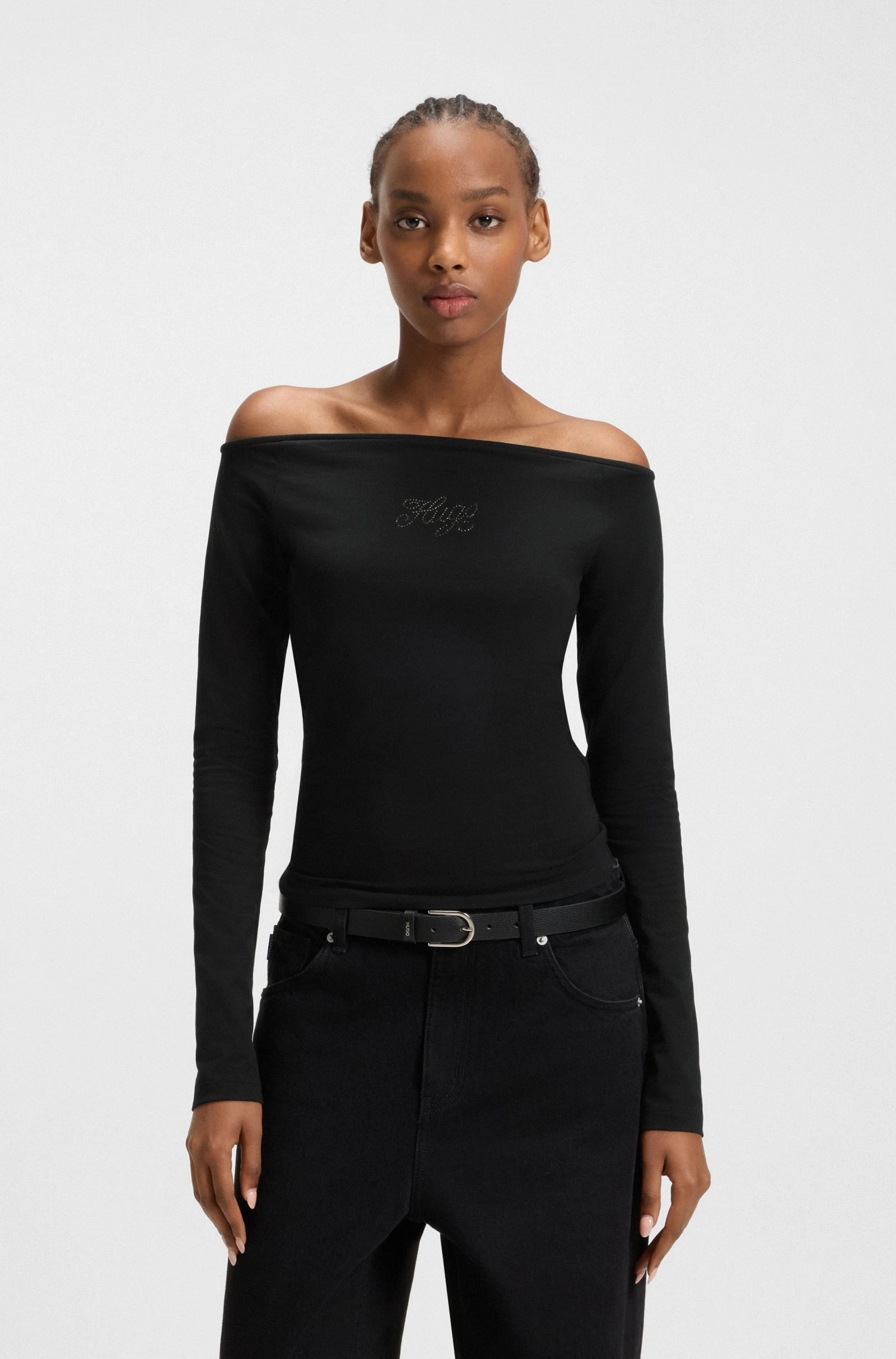 Γυναικεία Μπλούζα Stretch-cotton top with rhinestone logo Hugo Blue 50546931-001