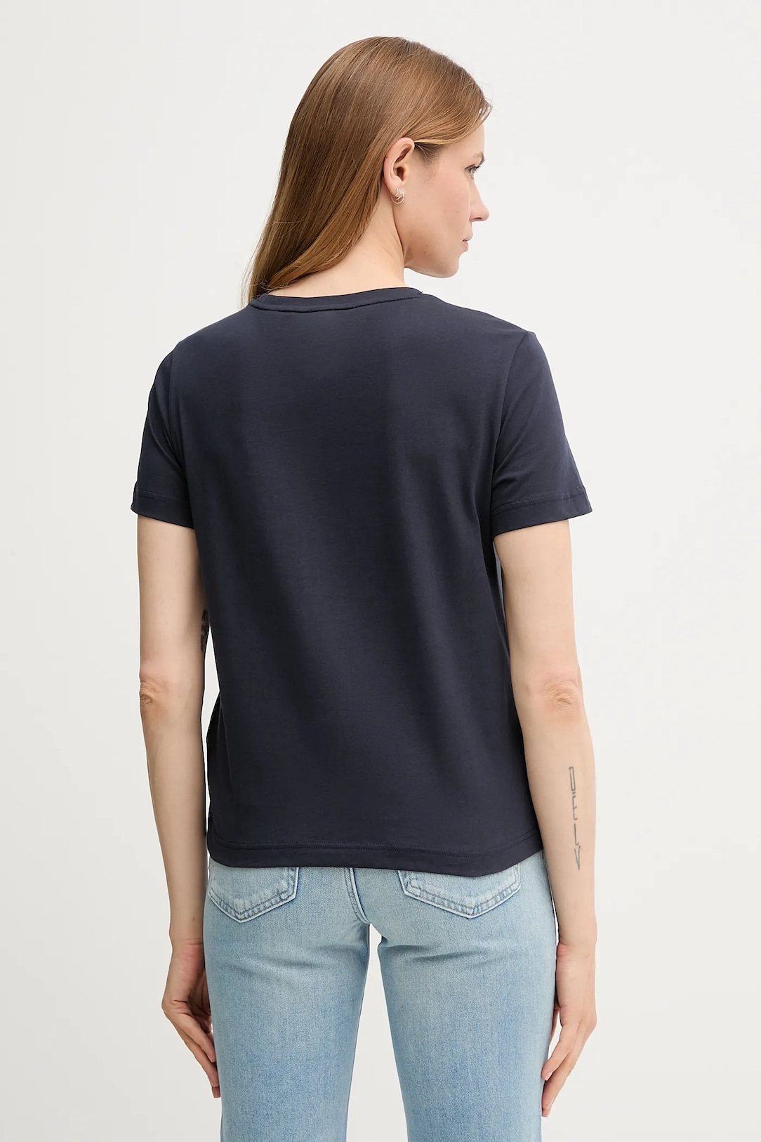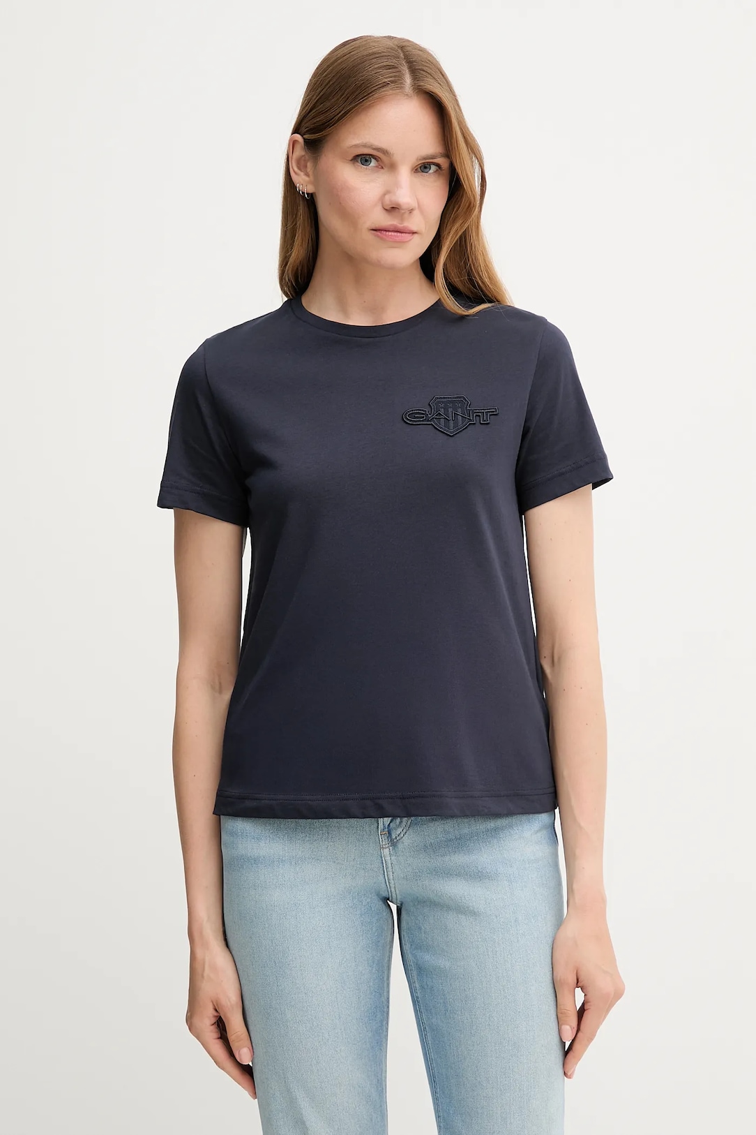 Μπλουζάκι από τη συλλογή Gant κατασκευασμένο από λεπτό, ελαστικό πλεκτό. Μοντέλο από αέρινο βαμβακερό ύφασμα.