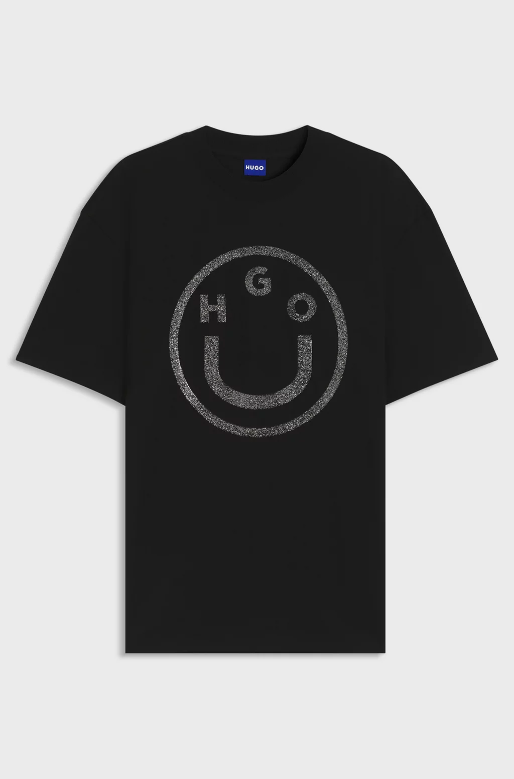 HUGO Γυναικεία Μπλούζα μαύρη Oversized-fit T-shirt in cotton with Happy HUGO logo 50550141-001
