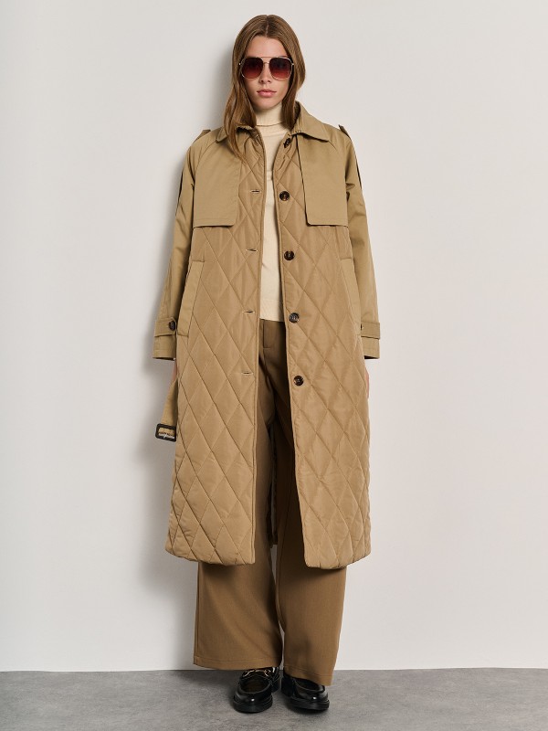 Αυτή η μακριά καμπαρντίνα είναι το ιδανικό κομμάτι για μια γυναίκα που θέλει να νιώθει άνετη, ζεστή και κομψή σε κάθε περίσταση.