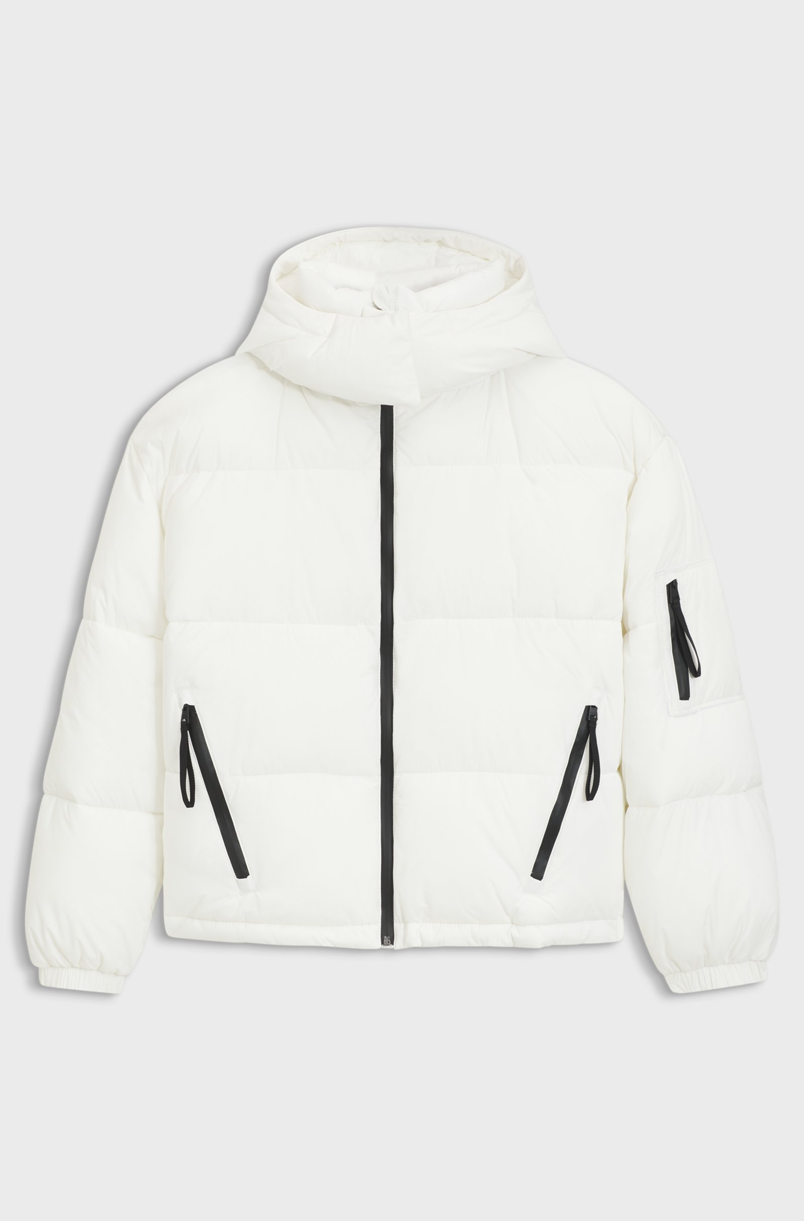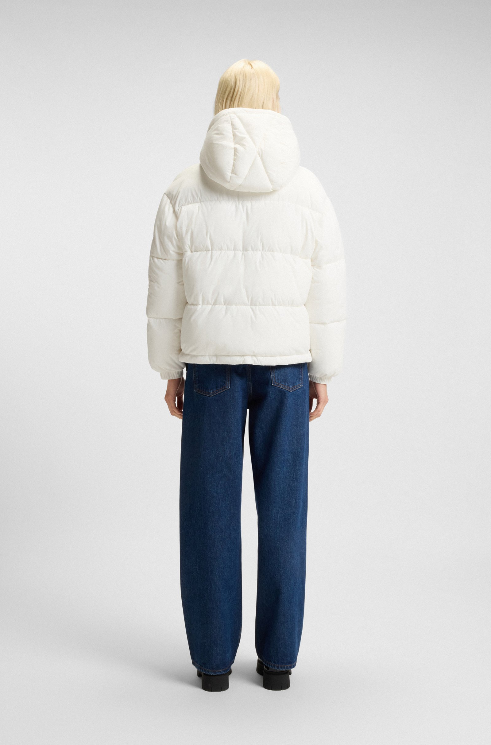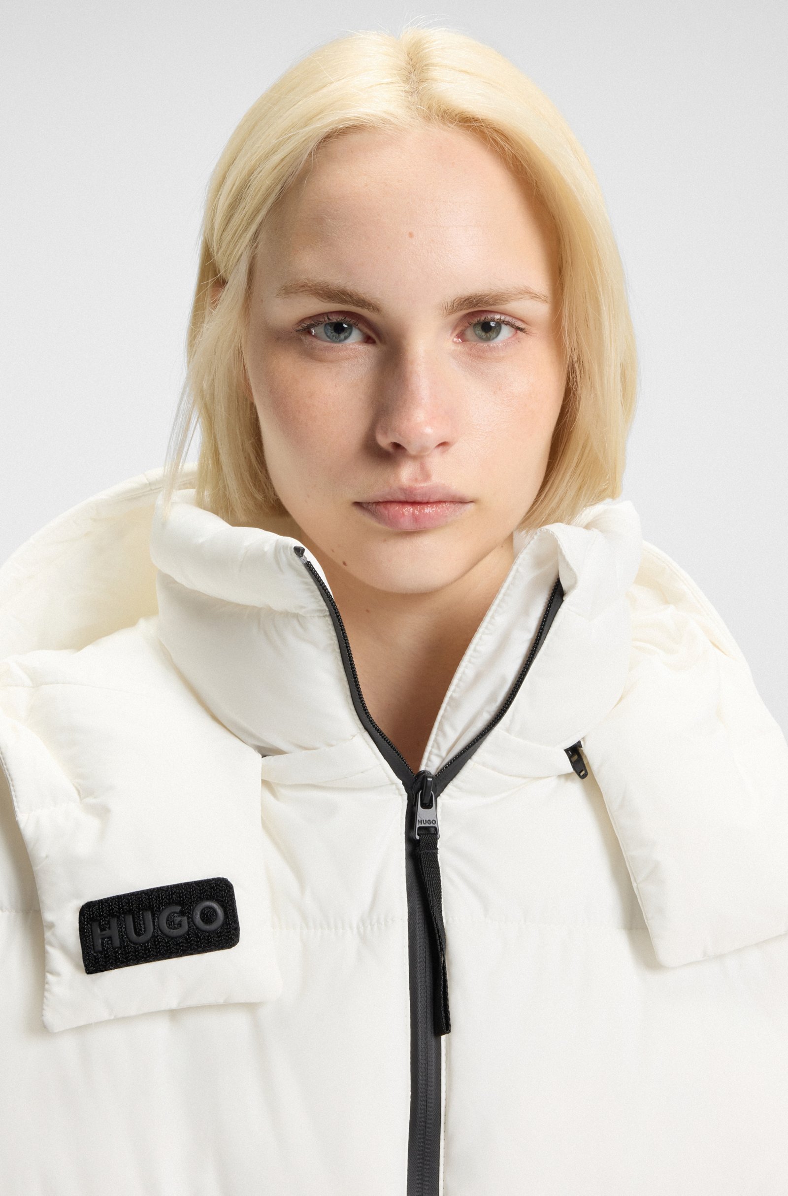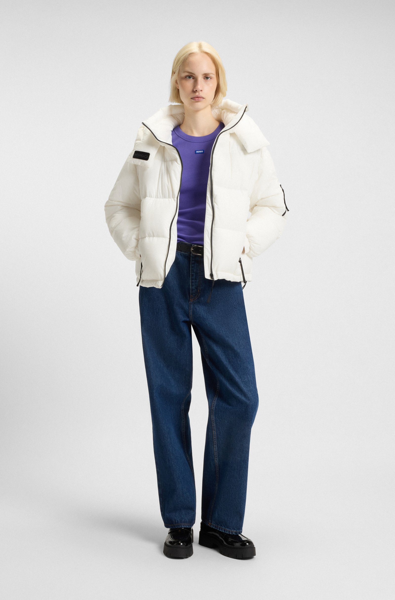Επενδύστε σε ζεστή προστασία για τις πιο δροσερές εποχές με αυτό το γυναικείο μπουφάν HUGO. Χαλαρή εφαρμογή. Αποσπώμενη κουκούλα. Λεπτομερής λεπτομέρεια με το λογότυπο. Αυτό το προϊόν περιέχει τουλάχιστον 60% καλύτερες πρώτες ύλες. Αυτό το προϊόν είναι εν μέρει κατασκευασμένο από ανακυκλωμένο πολυεστέρα. Εμείς στην HUGO BOSS προτιμούμε τον ανακυκλωμένο πολυεστέρα από υφασμάτινα απόβλητα πριν και μετά την κατανάλωση και κάνουμε το καλύτερο δυνατό για να καταργήσουμε σταδιακά τον πολυεστέρα από τα μπουκάλια PET.