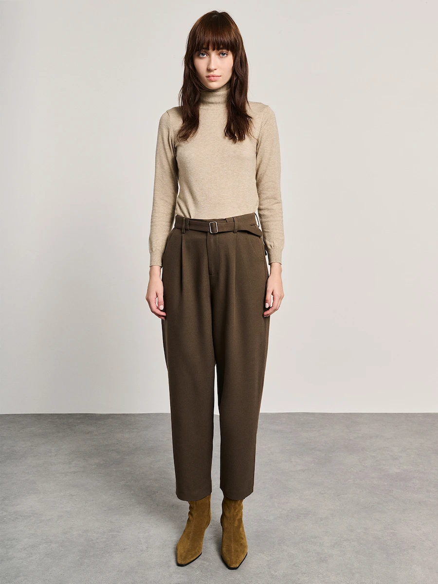 Γυναικείο Ψηλόμεσο Παντελόνι Με Ζώνη Καφέ STAFF GALLERY 60-005.054.Ν0005