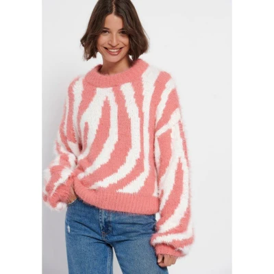 Πουλόβερ με σχέδιο στην πλέξη Ροζ Funky Buddha FBL006-133-09