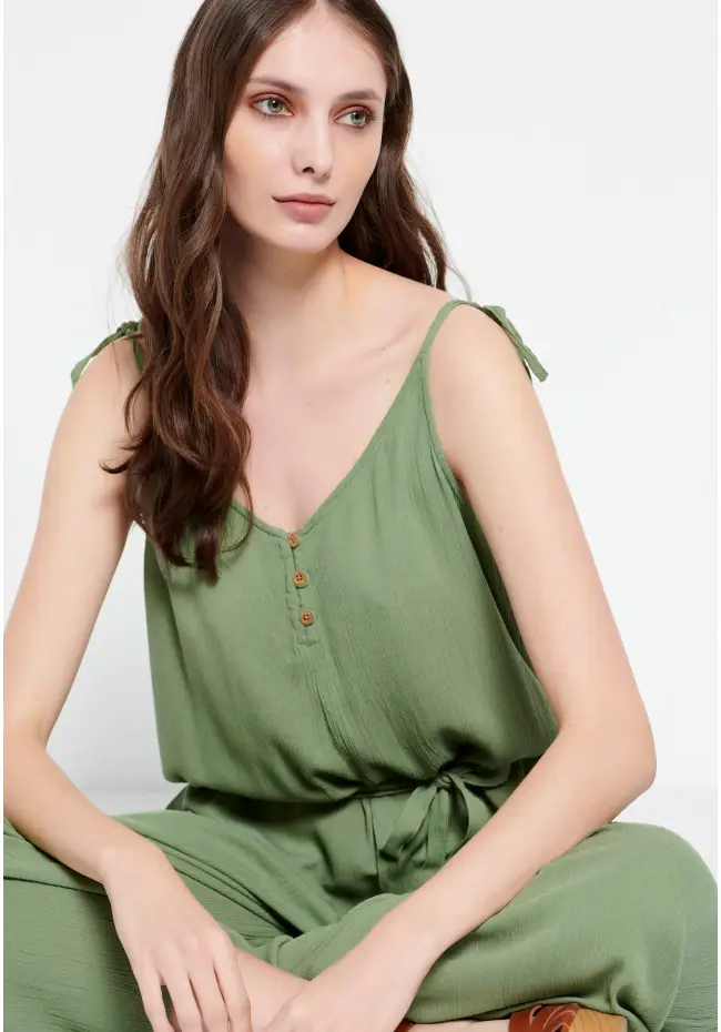 Γυναικεία Ολόσωμη φόρμα με τιράντες Πράσινη FUNKY BUDDHA FBL007-120-12
