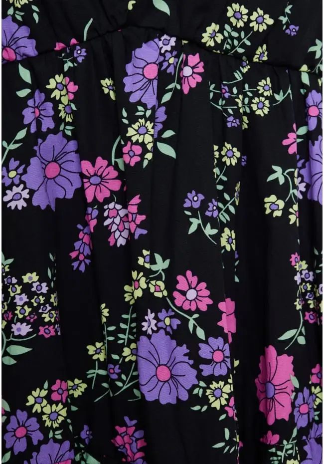 Γυναικείο Φλοράλ μάξι φόρεμα με βολάν στους ώμους Μαύρο FUNKY BUDDHA FBL007-117-13