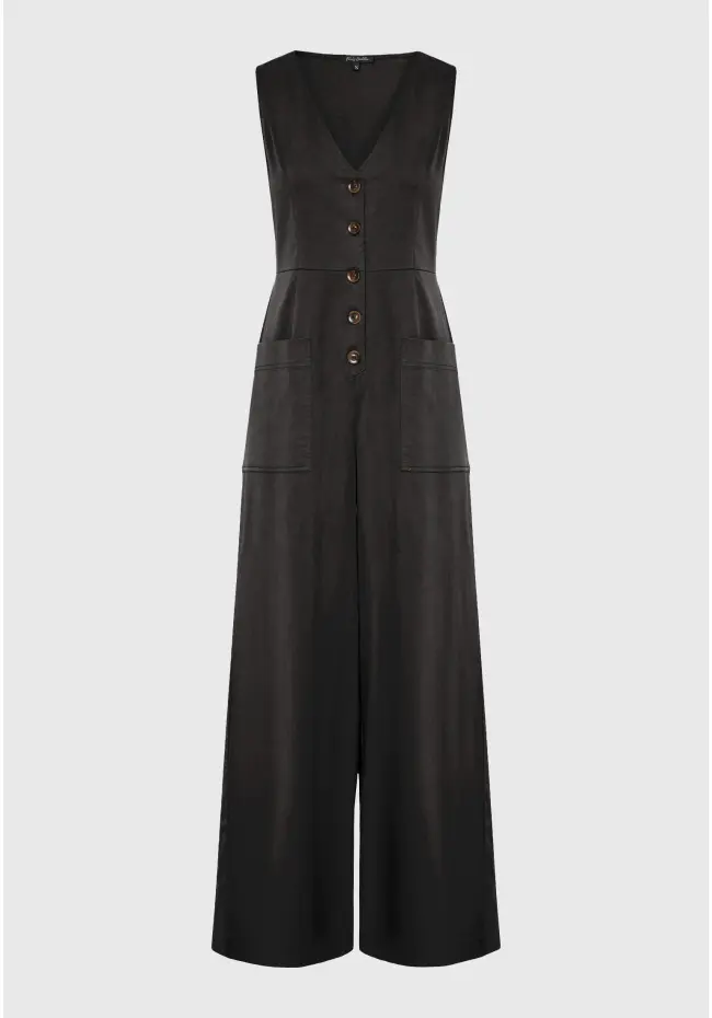 Ολοκλήρωσε το στυλ σου με ένα jumpsuit που συνδυάζει άνεση και κομψότητα σε απόλυτη αρμονία. Το αμάνικο σχέδιο με τη διακριτική V-λαιμόκοψη αναδεικνύει τη θηλυκότητα, ενώ τα μεγάλα κουμπιά στο μπροστινό μέρος προσθέτουν μια vintage πινελιά. Η φαρδιά γραμμή του παντελονιού προσφέρει ελευθερία κινήσεων και αέρινη αίσθηση, ενώ οι πρακτικές τσέπες ενισχύουν τον μοντέρνο, casual χαρακτήρα του. Φόρεσέ το με σανδάλια για ένα χαλαρό look ή με ψηλοτάκουνα για μια πιο elegant εμφάνιση που θα κλέψει τις εντυπώσεις.