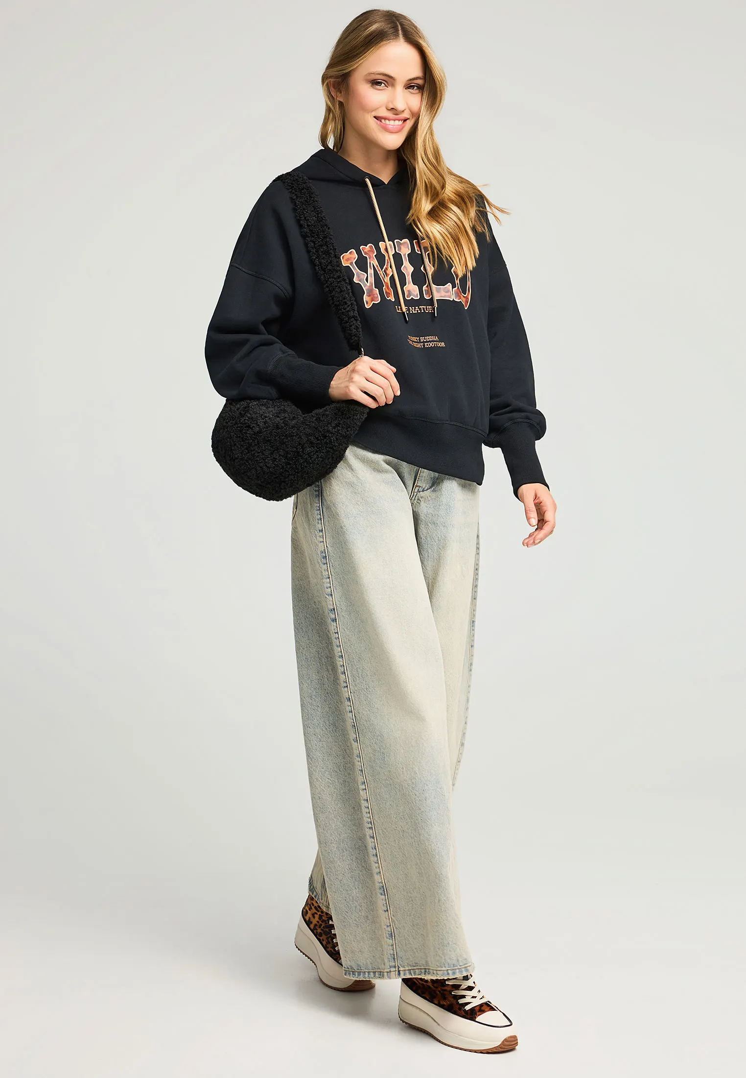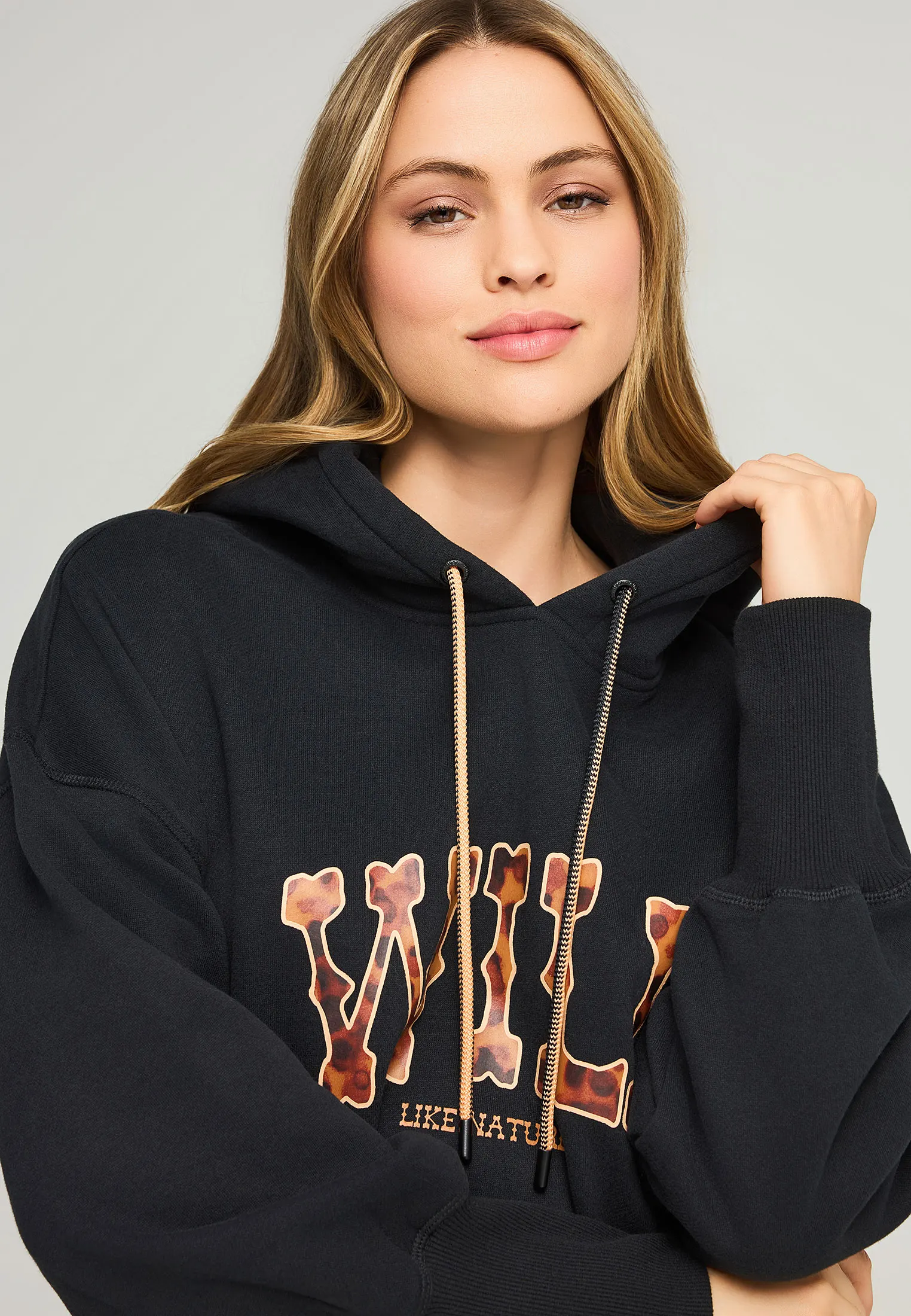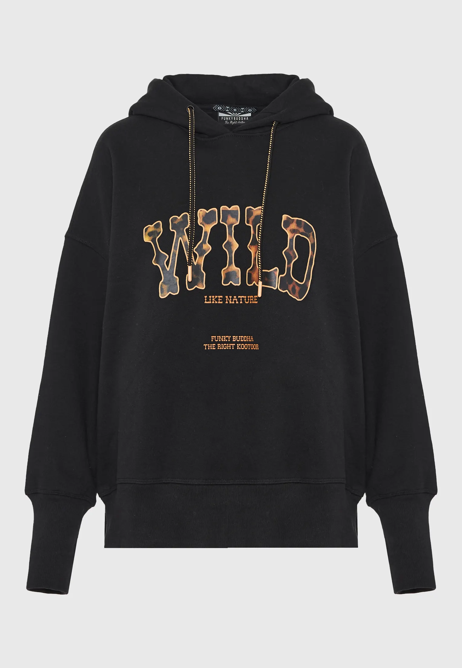 Αυτό το oversized φούτερ με κουκούλα είναι η τέλεια επιλογή για να συνδυάσεις την άνεση με ένα τολμηρό streetwear στυλ. Η χαλαρή γραμμή του και το μαλακό φούτερ ύφασμα εξασφαλίζουν άνετη εφαρμογή, ενώ η στάμπα με τη λέξη “WILD” και το λεοπάρ τύπωμα προσθέτει μια δυναμική και ξεχωριστή πινελιά. Φόρεσέ το με ένα τζιν ή ένα κολάν για ένα χαλαρό, καθημερινό look.