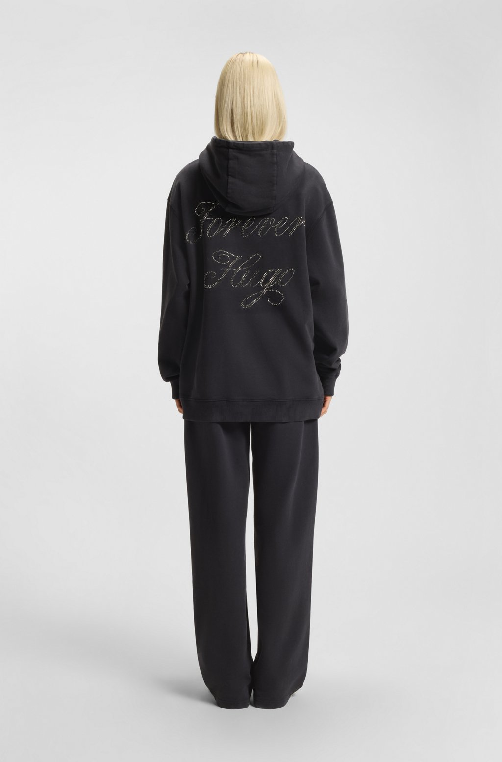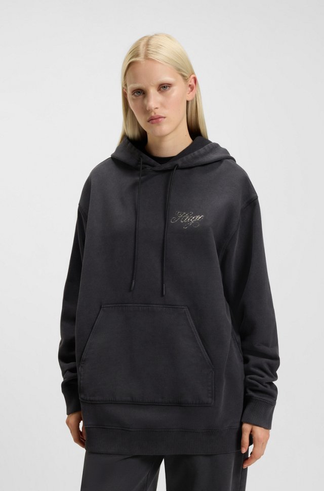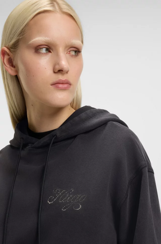 HUGO Γυναικεία Μπλούζα μαύρη Oversized-fit hoodie with rhinestone-studded logos 50547955-001