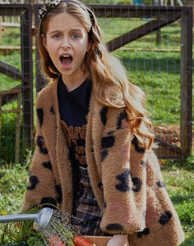 Ζακέτα πλεκτή χνουδωτή με πλέξη animal print και τσέπες για κορίτσι Energiers 16-123201-6