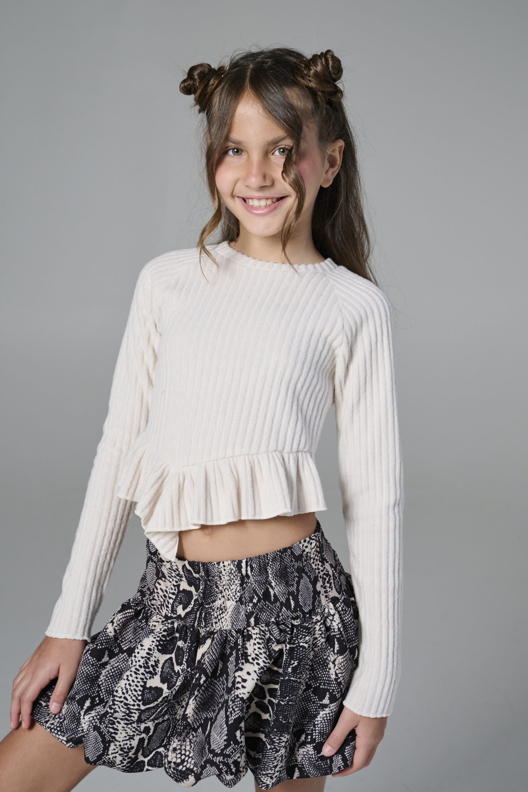 Παιδική Μπλούζα διάταξη με βολάν στο τελείωμα Εκρού 4-16 ΕΤΩΝ Melin Rose MRW25/26-0429