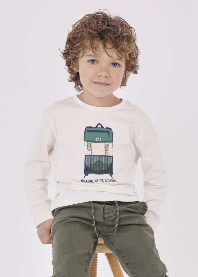 Μπλούζα μακρυμάνικη απλικέ αγόρι Μπεζ