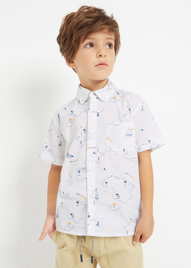 Πουκάμισο μακρυμάνικο σταμπωτό αγόρι Λευκό