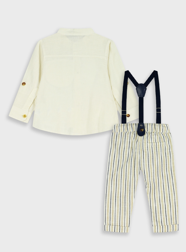 Σετ με βερμούδα πουκάμισο γιακάς μάο baby αγόρι Καφέ ανοιχτό