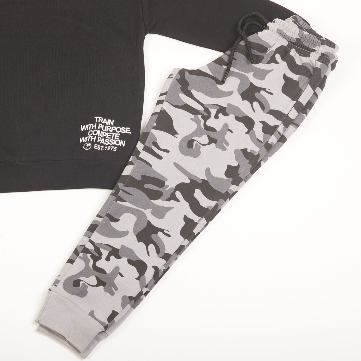 Σετ φόρμα από την TraxStudio. Το προϊόν είναι κατασκευασμένο από 80% βαμβάκι και 20% ελαστικό, προσφέροντας άνεση και ευκολία στην κίνηση. Διατίθεται σε Μαύρη απόχρωση.