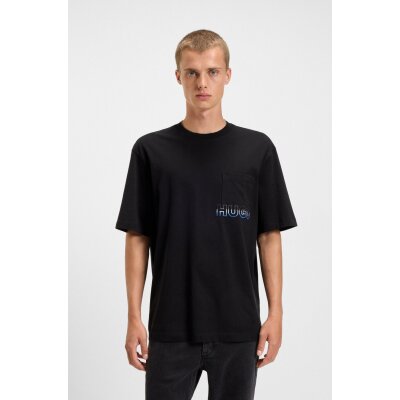 Ανδρική μπλούζα All-gender cotton-jersey with logo prints HUGO BLUE 50549769 μαύρο